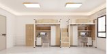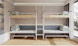 公寓書(shū)桌床: 1、公寓床架: (1)雙人位公寓床,尺寸長(zhǎng)4500mm,寬900mm,高2100mm。 (2)床立柱:采用正六邊形無(wú)縫鋼管,直徑65mm(±...點(diǎn)擊詳情